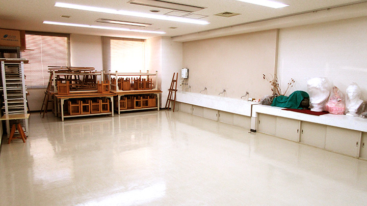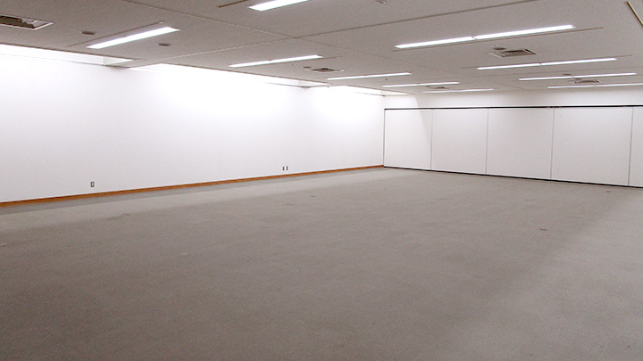 204m²の展示室です。絵画やオブジェなどの制作物の展示の他、集会や学習会にも利用いただけます。
