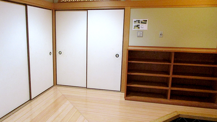 - マイク設備、司会台、移動式ホワイトボード、可動式展示パネル、展示棚、机37、椅子180(※机と椅子はふるさと学習室と共用)
